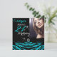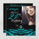Turkos 21-årsfirande. Lägg till ditt foto, glitter zebrandelad, svart och vit. 21. Eleganta moderna och stilrena 21-års inbjudningar. Inbjudan för alla tillfällen. Kan användas för alla åldrar och födelsedagsfiranden. Anpassa med dina egna detaljer och ålder. Mall för Sweet 16, 16-års, Quinceanera 15-års, 18-års, 20-års, 21-års, 30-års, 40-års, 50-års, 60-års, 70-års, 80-års, 90-års, 100-års. Fantastisk produkt för kvinnor, flickor, Zizzago skapade denna design OBS! Alla platta bilder! De har INTE äkta glitter, diamanter eller äkta rosetter!!