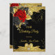 Födelsedagsfest av fjäril Röd ros Blommigt Guld-un Inbjudningar