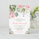 Vackert inbjudningskort för möhippan med grönt och blommigt av rosa. Perfekt för en födelsedagsfest. Ord kan ändras till kostym med dina egna uppgifter eller krav