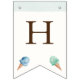 Cute Ice Cream Cone Theme, Födelsedagsfest Bunting Flaggor. Glaskoner med vattenfärg i blått och grönt med chokladbrun text.