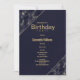 En modern lyxmarinkblått och guld-geometriskt marmorglam Födelsedagsfest inbjudan är perfekt för alla klassmässiga och sofistikerade ceremonier. Den här gedigna geometriska mörk blått och guld-lysande designen är perfekt för trendiget och snyggten eller vem som helst. Anpassa den här designen med egen information om meddelande och personlig. Alla designer skrivs ut.