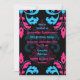Ett mycket söt, färgstarkt och gult dammmönster i shock rosa, turkos och svart på fem gånger7 inbjudningar som är skrivna för en 18:e födelsedagsfest. All text kan enkelt ändras av er, och det skulle kostym många tillfälle.
