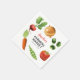 Roligt jordbrukare marknadsför temat födelsedagsfest papper napkin med hand plockade illustrationer av brussel-groddar, morot, lök, tomat, söta ärter, slag. Anpassa den här produkten genom att lägga till barnets namn och händelsemedatum.