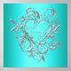 Elegant tealblå silver hjärta söt sextonårs födelsedagsfest affisch.