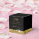 Elegantens fyrkantiga favoritruta med gult guld glitter och konetti sprinkles på en svart bakgrund med anpassningsbar tack för din text, perfekt för en modern och chicens födelsedag, gräns, Quinceañera, bat mitzvah, babydusch eller bachelorette-fest. Klicka på ANPASSA YTTERLIGARE om du vill ändra typsnitt, färg och layout för att skapa en roligt och en unik personlig-förmånslåda för gästerna i party.