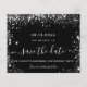 Observera att detta datum är pappert och mycket tunt. Kuvert ingår inte. För tjockare kort (samma design), besök vår butik. Ett giftigt och trendig Spara datum för en 50:e (eller någon annan ålder) födelsedagsfest. En klassisk svart bakgrund som dekoreras med faux silver glitter damm. Anpassa och lägg till datum och namn/ålder. Texten: Spara datumet skrivs med ett stort trendig-handskript i stil.