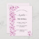 En modern inbjudan och elegant födelsedagsfest till en 50:e (eller någon annan ålder) födelsedagsfest. En chic rosa som dekoreras med rosa botaniska sprit, blommigtar och löv. Namn är skrivet med ett stil-skript som hanteras med trendig och med dekortecken. Svart text. Om du bara vill behålla utslagen tar du bort exemplet namn lämnar du blankstegen eller symbolerna framför och efter namn. Tillbaka: rosa färg. Tips! Om du inte vill att det ska se ut som ett vykort klickar du på anpassa, går till baksidan och tar bort delaren och lägger till frimärke.