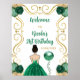 Födelsedagsfest Brown Hair Princess Grönt Welcome Poster