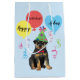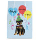 Grattis på födelsedagen hälsning med denna söta utformning med en rottweilervalp i lycklig, party, omgiven av färgstarka ballonger och strömbrytare. "Grattis på födelsedagen, [namn]" på framsidan och "Grattis på födelsedagen till dig!" på baksidan. Namn kan enkelt ändras. Klicka bara på knappen för anpassning.