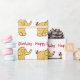 Cute gult polka dot elephants dekorerar den pappra födelsedagslappningen. Designen kommer från originalteckningen.