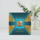 Födelsedagsfest Damask Teal Blue Guld Inbjudan