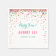 Napkins från party på kalkfödelsedagen med roligt färgad-konfetti-cirklar sprinkler av guld, rosa, grönt och teal med din födelsedagstjuvans info i mitten. "Party Time" i roligtens skriptteckensnitt med information om ditt barn nedan.