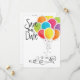 Låt dina gäster få veta om den speciella födelsedagsfesten med det här spara det vykort som innehåller en färgfull samling ballonger i ett regn av färg. Anpassa informationen på kortets framsida och baksida till information om din egen party.