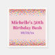 De här söta, roligt rosa-färgade konfektinblöjorna blir perfekten som tillägg till vilken födelsedagsfest som helst! Anpassa med namn, ålder, händelselubrik och valfritt datum.