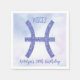 Den här pappra napkin för söt lila och lavender Pisces-födelsedagsfesten har ditt astrologiska tecken från Zodiac i en vacker gnistra som till exempel konstellationerna. Anpassa den här söta dekorn med ditt namn i kursivt skript för någon med en sen födelsedag i februari eller tidigt.