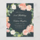 Modern blommigt födelsedagsfest inbjudan som har rosa och persikofärgade peonier och ro med eukalyptus löv på mörkens grått-bakgrund. Perfekt för vår eller sommarens födelsedagsfester. Som en del av budgetvalet här om Zazzle, bjuder dessa in kom i begränsada storlekar och pappra lagrar. Om du behöver ett annat storlekt eller pappert lagrar kan du överföra den här designen till ett standardformat 5x7 med hjälp av verktyg för designöverföring för fler alternativ.