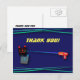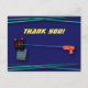 Använda de här praktiska vykorten för att tacka dig för att du kom till din laser märkre party. Anpassa fram och tillbaka med ditt eget meddelande. Konstruktionen har laserstrålar som skjuter av i olika riktningar. En röd faserpistol skjuter mot en svart och röd väst. Den här designen koordinerar med den här inbjudan: