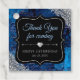 Grymma blått och iriserande glittrande handskriven Sjöjungfru brev och musik ovanpå flytande vattenfärgsbakgrund, med silver glitter och diamanturdel