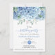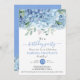 Blåvitkittelhydrangeas vattenfärgsfärgad blommigt födelsedagsfest inbjudan. Anpassa namn, data och information.