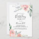 Den elegant rosa blommigten födelsedagsfest inbjudan är perfekt för ett enkelt födelsedagsfirande. Utformningen har hand om rosa ro och människor med grönt och grått löv, vilket inspirerar naturskönheten.