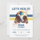 Bort från roligten med den här Coolan Boys Sports Soccer Födelsedagsfest inbjudan, perfekt för ett sporttemat barns party! Utformningen har en färgstark fotboll, brunfotshandskar och reflexblått och gult rand. Den här pojkens födelsedagsinbjudan lägger en sportig stil till firande. Anpassa med ditt barns födelsedagskalender om du vill få en unik fingervisning. Den här sportdagen inbjudan är perfekt för småbarn, barn eller interpoleringar som har fotboll i kärlek. Matcha med dekorationer för fotbollsfödelsedag och temaaktiviteter för en vinnande dag!
