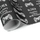 Presentpapper för födelsedagsfest för datorspelare med spelkontroll. Spelkontroll på svart bakgrund. Lägg till ditt namn och ålder.