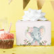 Kvinnliga rosor och guld- design som presenterar vattenfärgillustrationen av en förtjusande bebiselefant