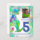 Den här Raring T-Rex inbjudan Dino fläkt till roligt 5:e födelsedagsfesten. Färgfullt vykort för dinosauribudget-inbjudan till födelsedagsfest med fotomall. Fira din lilla T-Rex-sväng fem med perfekten dinosaur 5:e födelsedagsfest inbjudan för pojken som kärlek dinosaurier. Anpassa den färgstarka vattenfärgen stänk blå och grönt dino 5:e födelsedagsfest inbjudan med ett foto av födelsedagspojken eller flickan, födelsedagskalenummer och party-detaljer och du är alla inställd på en roligt full dinosaur med temat dino-födelsedag. Alla dinosauriarter är välkomna. Unik originalteckning av konstnären Catherine Sweetman