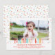 Den här fotoinbjudan innehåller bild på födelsedagsflickan, tillsammans med roligt, färgstark skrift och konetti. Den här designen är en perfekt för dina barns födelsedag.