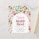 Berry första födelsedag för din lilla stora dag! Denna utformning har en groovy mönster av jordgubbar och blommor mot en rosa, med en boho arch-övertäckning för texten. Namn är skrivet i roligten med texten "berry first" i retrotypografi. Detta mönster kan användas för trädgård party, te party, jordbruksteman eller jordbrukarens party, picnics eller något annat firande under sommaren! Som en del av Zazzles budgetval komar inte lakan i standardkortstorlekar. Om du vill ha den här designen på ett standardkort kan du hitta den i samlingen eller användan Zazzle Make Maskin för att överföra den till önskad produkt. Visa den samling som är länkad på den här sidan om du vill matcha artiklar eller gå till vår butik om du vill ha mer första födelsedagsfest inbjudan.