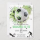 Grönt svartvit fotboll/födelsedagsfest inbjudan för ett barn. Anpassa den med din bday party-information. Underbar för sportfantaster och spelare.