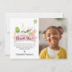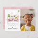 Min Födelsedagsfest för gårdsdjur Rosa check Flickfoto Tacksamhetskort är det perfekta sättet att tacka vänner och familj för att de kom till din fest! En enkel söt design passar lätt med alla födelsedagsteman på bondgården.