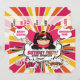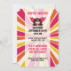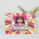Roligt tecknad bok hjälte tog upp födelsedagsfest inbjudan med fet och ljusa färger rosa, orange och gult med anpassningsbar på kortframsidan för personlig beröring.