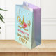 Akta dina gäster med den här söta enmajsmatsäckarna med födelsedagsfest-presentväskor med vackra enmajsblommor i guld och söt blommor med modern typografi på en pastellartad regnbågsbakgrund.