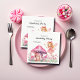 En charmerande design med rosa hussvampar och en söt liten leende fjär! Du kan anpassa detta med dina egna uppgifter.
