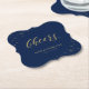 Den här personligen för chic underlägg att lägga till information om snyggten till din speciella dag. Den här designen har snyggt-typografin "Cheers!" och gnistor i guld struktur. Perfektens dekoration eller party favors för en modern födelsedagsfest. Bakgrunden till färg är en marinblått, men du kan byta till vilket färger som helst. Matchande födelsedagsfest inbjudan och party finns i min butik. BaraBomDesign.