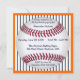 Den perfekta födelsedagsfest inbjudan för baseballfläktar! Designen presenterar en vitbakgrund med marinblåa streck. Det finns orange klippning runt om kanten av inbjudan. Det huvudsakliga designsärdrag är en stor baseball med röd sy uppsättning mot blåtten klämmer fast randbakgrund. Insida baseballet är text i marinblå stilsort. Alla av text kan skräddarsy för att passa dina behov. Den omvända sidan av inbjudan är den fasta orangen med vit- och blåttstreckklippning. En underbar All-Stjärna inbjudan för din lite slugger!