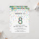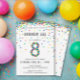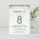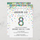 Konfetti 8-års födelsedags / åttonde födelsedags inbjudan för pojkar! Med din sons fests detaljer och en "8" i konfetti, med roliga färgade cirklar i starka primärfärger som strömmar ner från toppen av dessa söta inbjudningar. Rubriken lyder: "VI KAN KNAPPAST VÄNTA!" men du kan ändra det till valfri text du vill.