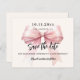 En modern och elegant Spara datum för en födelsedagsfest (i alla åldrar). En mjuk grädda, beige färgad, dekorerad med stor rosa. Anpassa och lägg till datum, ställe, namn och ålder. 1 lakan = 1 inbjudan tryckt kant till kant.