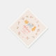 Födelsedagsfest av papper napkin för katttema med illustration av katter med hattar från party och blommor från rosa.