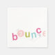 Den pappra blöjan för studsande födelsedagsfest har en redigerbar ålder inuti O och en studsgrafik med shock rosa, ljust rosa, kalkgrönt och akvblått brev. Det här objektet paras perfekt med Stacey Meachams studsande födelsedagsfest. Anpassa genom att klicka på Redigera.