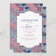 Födelsedagsfest för rosa Blue Blommigt Block Print Inbjudningar