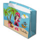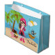 Denna design på dessa den gulliga piratfödelsedagsfestgåvan hänger lös särdrag ett iklätt rosa anseende för piratflicka på en strand vid en palmträd och en skattbröstkorgfullt av guld. En piratfrakt kan ses i avståndet som är förankrat i hav. Har också beställnings- text som personifierar den för din flickapirat. Några diagram vid nätt Grafik på Mygrafico.com.