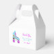 Roligt och söt partikellåda för ditt barns födelsedagsfest för rullskridtemat. Illustration av rosa- och blårullskridskor. I texten står det: "Tack för att du rullade med mig!"