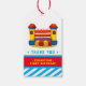 dekorera din studsfest med vår blå och röda Födelsedagsfest tack märkrna. Utformningen har ett studentslott på rand blå bakgrund.