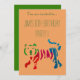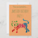 Ett sött, fullt anpassade födelsedagsfest inbjudan som passar ett barn, en pojke eller ett barn i alla åldrar som kärlek tigrar. Den här söta designen har en illustration bild av ett hand plockade av ett regnbågsdjungeldjur och färg och texten är anpassade till kostym.
