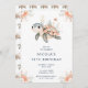 Vackert födelsedagsfest inbjudan har en sköldpadda med blommigt av korall rosa. Perfekt för en födelsedagsfest. Ord kan ändras till kostym med dina egna uppgifter eller krav