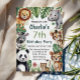 I denna moderna barndjungeldjungel från födelsedagsfest inbjudan ingår adjektiva vattenfärgsdjur som lejon, hippos, zebröder, cheetahs, tigrar, pandasbjörn och mer Det finns en grönt tropisk löv bakom djuren. I mitten av inbjudan finns det utrymme för att lägga till informationen i ett lättläst men dekorativt teckensnitt.