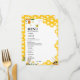 Ett menykort som lämpar sig för ett bitemat baby eller möhippa, födelsedatum. Med ett vattenfärgsbuzzerande bin. Anpassa med egen menytext för brunch, lunch eller middag.