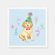 Grattis på födelsedagen hälsning med den här söta designen som har en leende, party-hatt-beklädnad av Golden Retriever-valpen omgiven av färgstarka remsor.